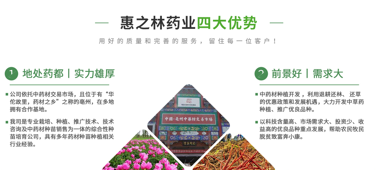 亳州市惠之林藥業(yè)有限公司是一家從事中藥材種苗、生產(chǎn)繁育企業(yè),現(xiàn)有育苗基地3000多畝,常年供應(yīng)藥材種苗100多種;藥材分為春、夏、秋、冬種植品種,既在種植季節(jié)我本合作社向藥農(nóng)提供中藥材種子和技術(shù)人員。藥材收獲從相應(yīng)產(chǎn)地收購(gòu)藥材,再加工投入市場(chǎng)同時(shí)也隨市場(chǎng)變動(dòng)不斷更新種子、藥材,力求讓種植戶(hù)得到利潤(rùn)。本合作社將秉承“誠(chéng)信、和諧、保質(zhì)、服務(wù)的企業(yè)理念”,堅(jiān)持以市場(chǎng)為導(dǎo)向,以現(xiàn)代化管理為基礎(chǔ),以全新的經(jīng)...